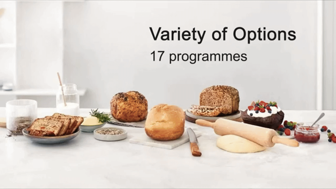 The sleek flat touchscreen bread making machine enables intuitive operation and wipes clean instantly. Program overnight with the 15-hour timer, plus 1-hour keep warm and 15-minute power recovery, and wake to freshly baked, warm bread